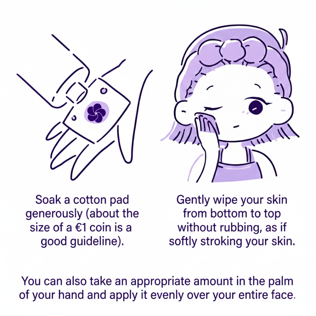How to use instructions for Murasaki Cosmetics' Acnes Clear Lotion, a Japanese skincare product available in the Netherlands.